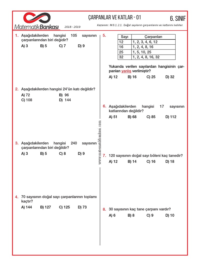 test carpanlar ve katlar 1 asal carpanlarin carpimi olan sayi kactir sayisinin kac tane birbirinden farkli asal carpani vardir pdf free download